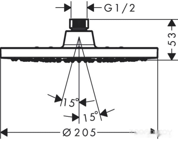 Диаметр (ширина) верхнего душа: 205 мм