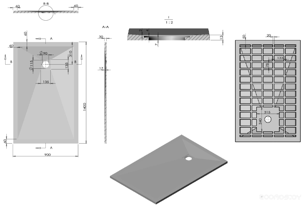 Душевой поддон Vincea VST-4SR9014A 140x90 антрацит