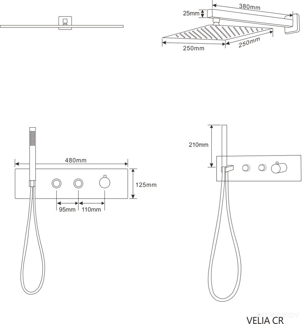 Диаметр (ширина) верхнего душа: 250 мм