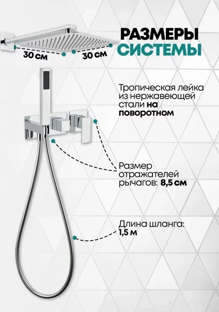 Диаметр (ширина) верхнего душа: 300 мм
