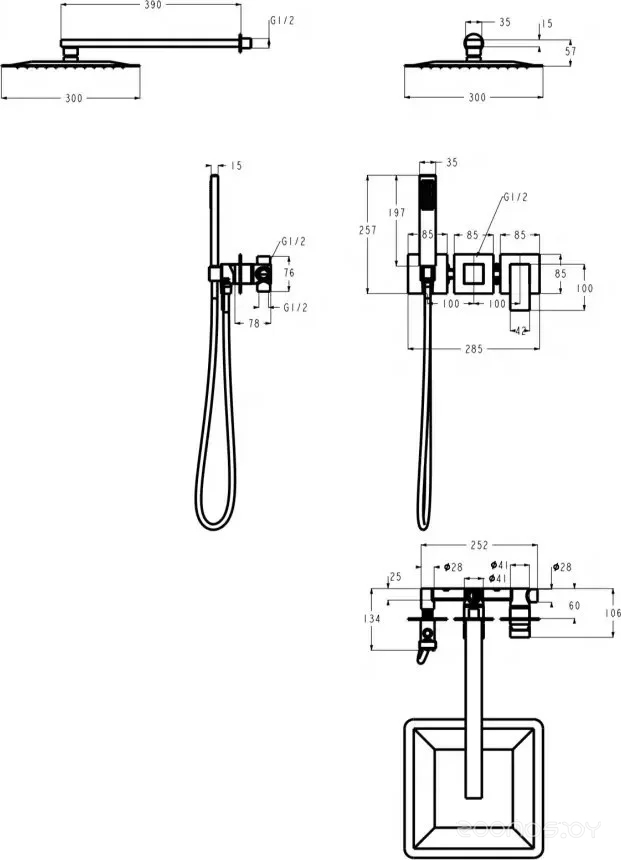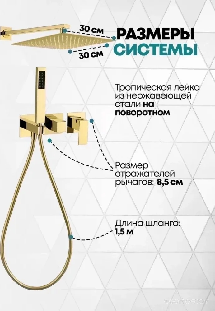 Диаметр (ширина) верхнего душа: 300 мм