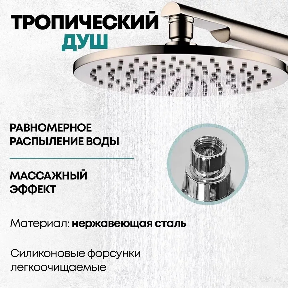 Диаметр (ширина) верхнего душа: 200 мм