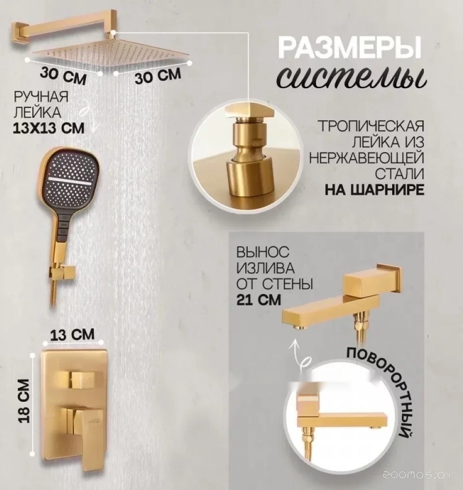 Душевая система Hansberge H6075 (золото матовый)