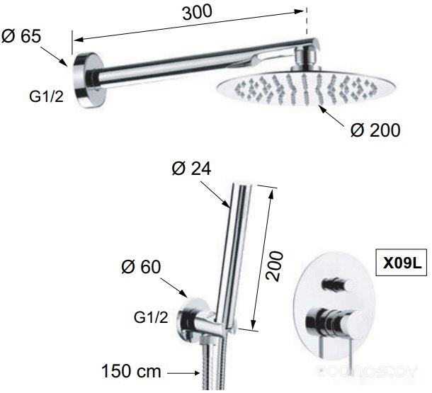 Вылет верхнего душа: 300 мм
