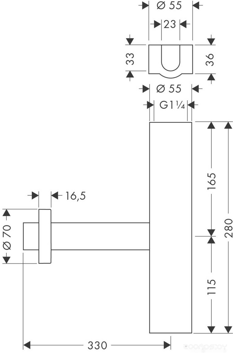 Диаметр сливного отверстия: 55 мм