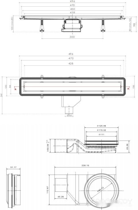 Диаметр водосточной трубы: 50 мм
