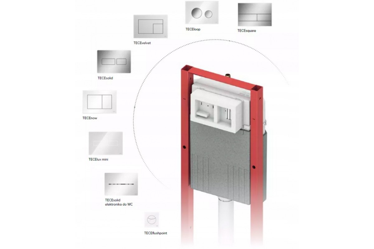 В комплект входит сама рама с интегрированным бачком и двойным механизмом смыва. Вам потребуется только приобрести подходящую панель смыва (кнопку) отдельно. TECE — бренд с 30-летней историей, собственные испытательные лаборатории и строгий контроль качества гарантируют долговечность.