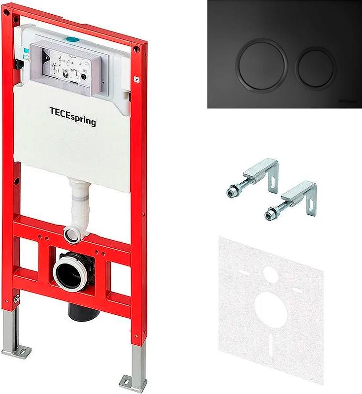Всё включено: рама, бачок, шумоизоляция и круглая матовая черная кнопка
