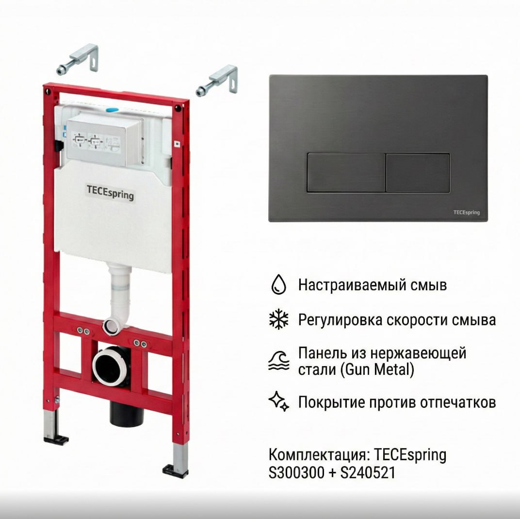 Панель смыва Tece Tecespring S300521 — это самостоятельный комплект для установки на инсталляцию. Выполненная из нержавеющей стали в цвете Gun Metal (темно-серый металлик) с матовым покрытием, она имеет специальную защиту от отпечатков пальцев. Прямоугольная форма, двухрежимный механический смыв и уникальный оттенок делают эту модель идеальным выбором для интерьеров в стиле лофт, минимализм, хай-тек или современная классика.
