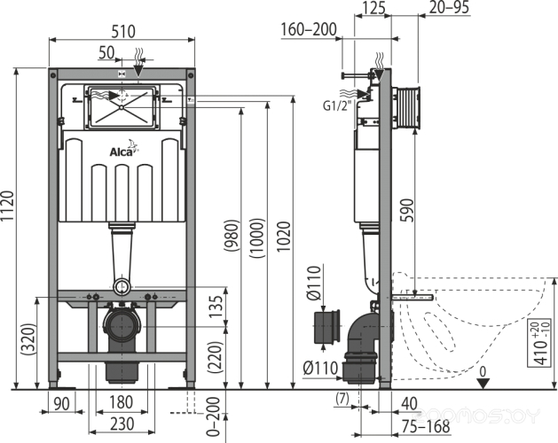 Подключение воды: 1/2 дюйма по центру сзади/сверху