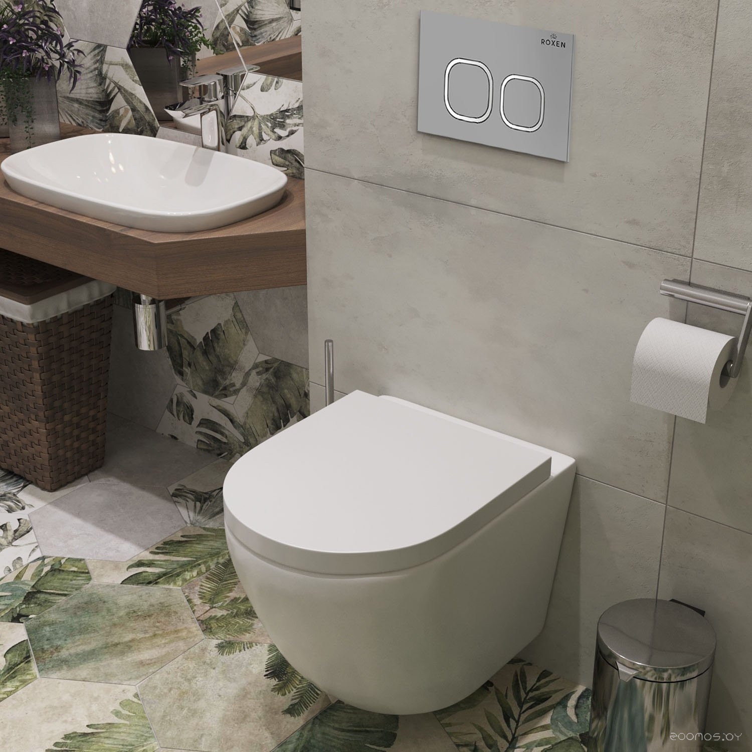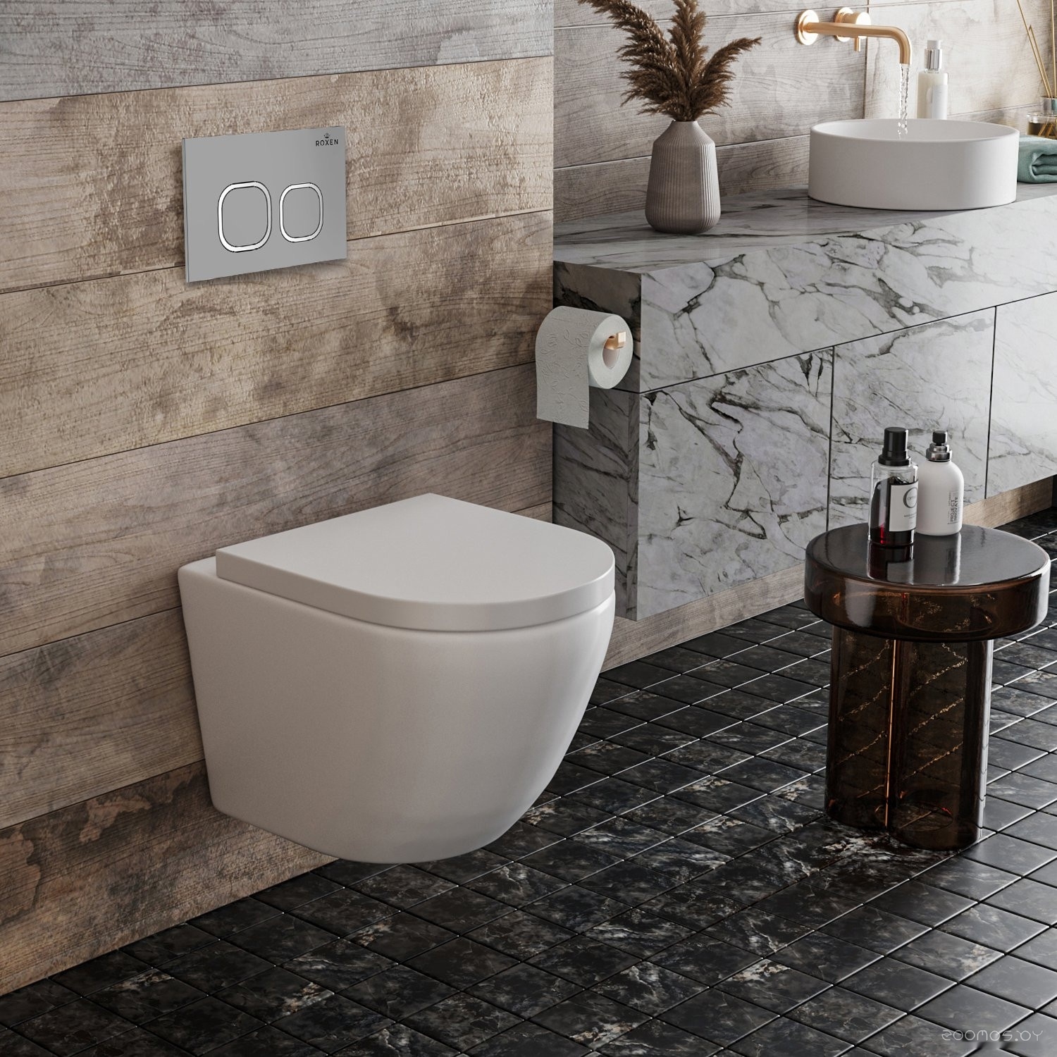 Комплект 6 в 1 унитаз Roxen Antares One Rimless с инсталляцией StounFix Slim 560993 (кнопка: матовая)