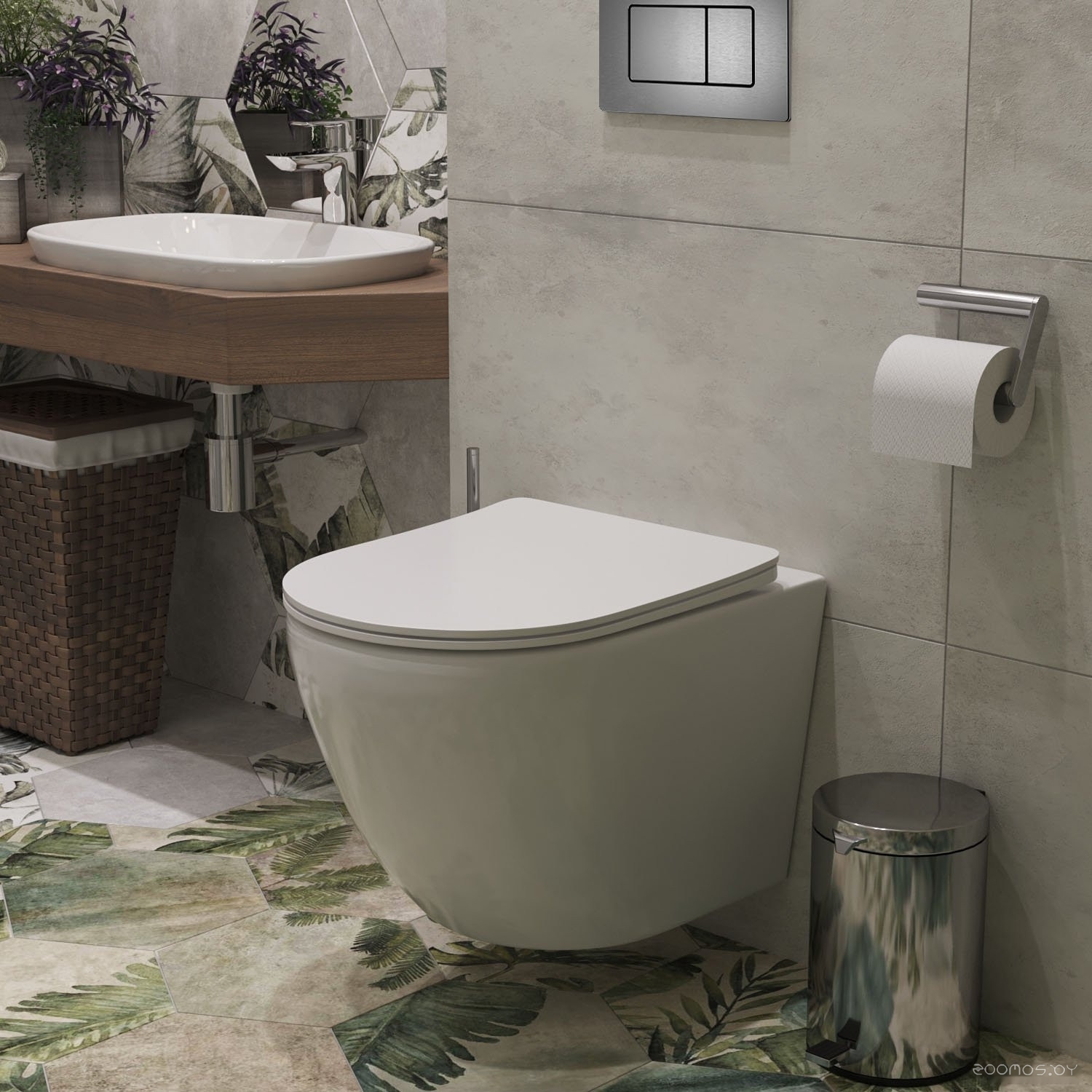 Комплект 6 в 1 унитаз Roxen Antares One Rimless с инсталляцией StounFix Slim 613423 (оружейная сталь/металл)