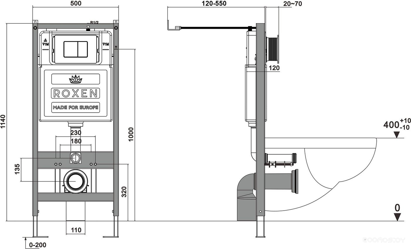 Комплект 6 в 1 унитаз Roxen Antares One Rimless с инсталляцией StounFix Slim 625385 (оружейная сталь/металл)