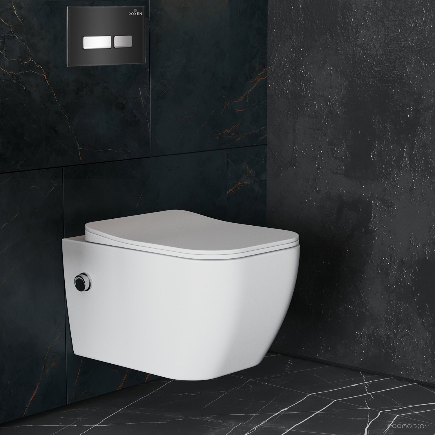 Комплект 6 в 1 унитаз Roxen Cube Bidet One Rimless с инсталляцией StounFix Slim 649838 (чёрное стекло)