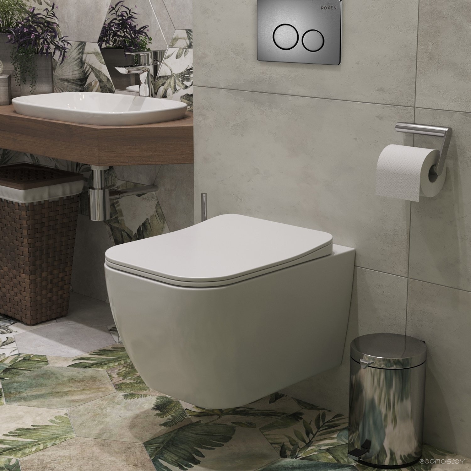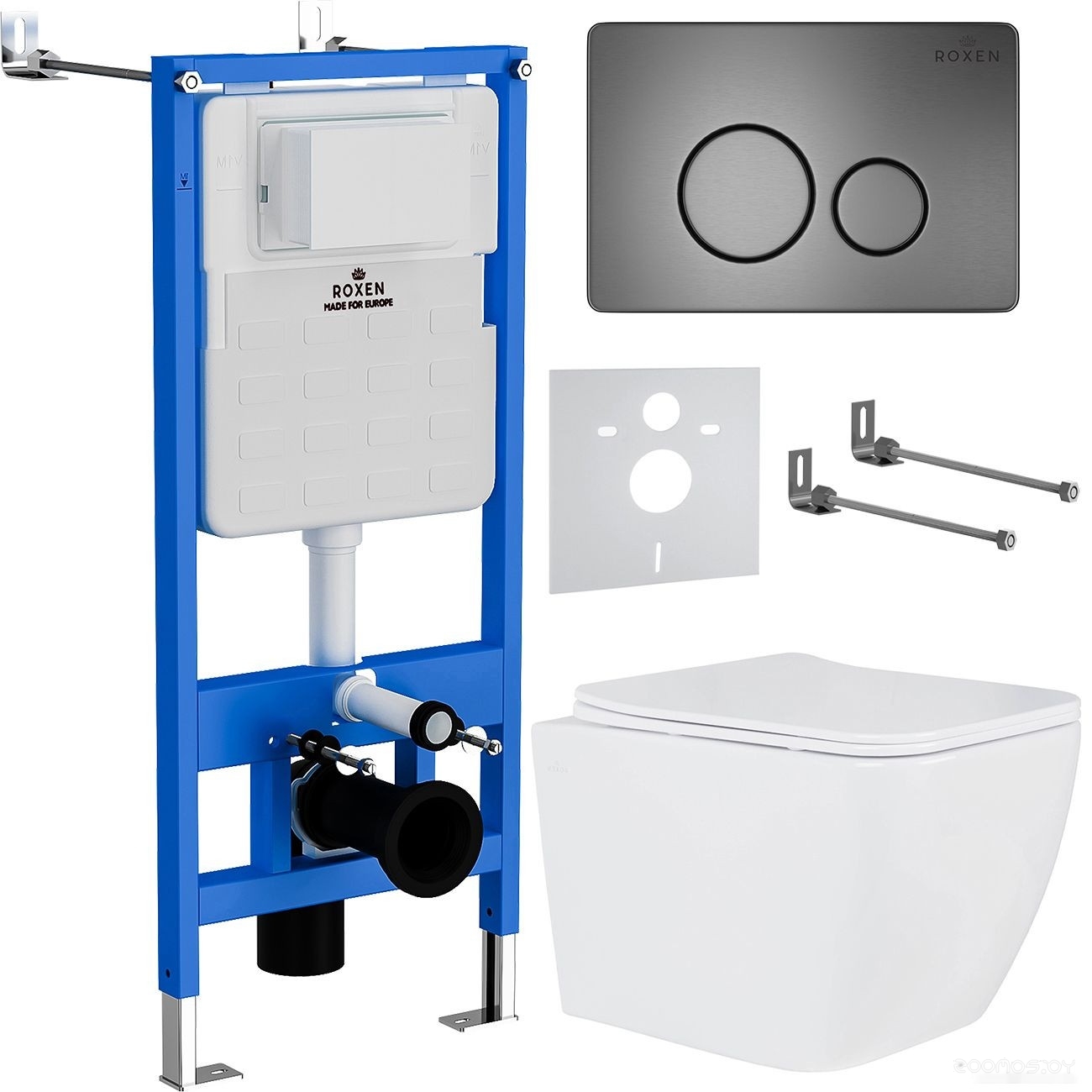 Комплект 6 в 1 унитаз Roxen Cube One Rimless с инсталляцией StounFix Slim 625840 (оружейная сталь/металл)