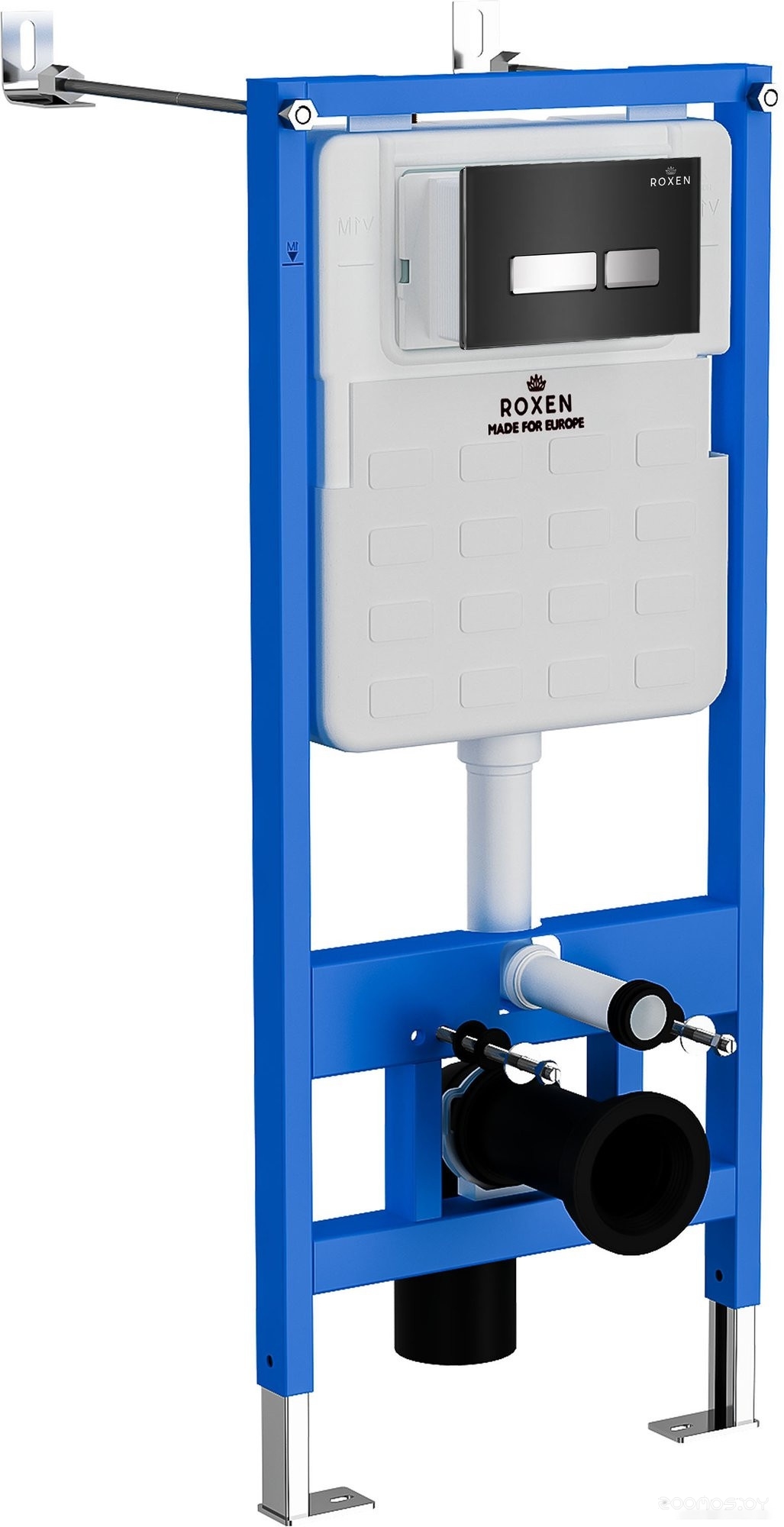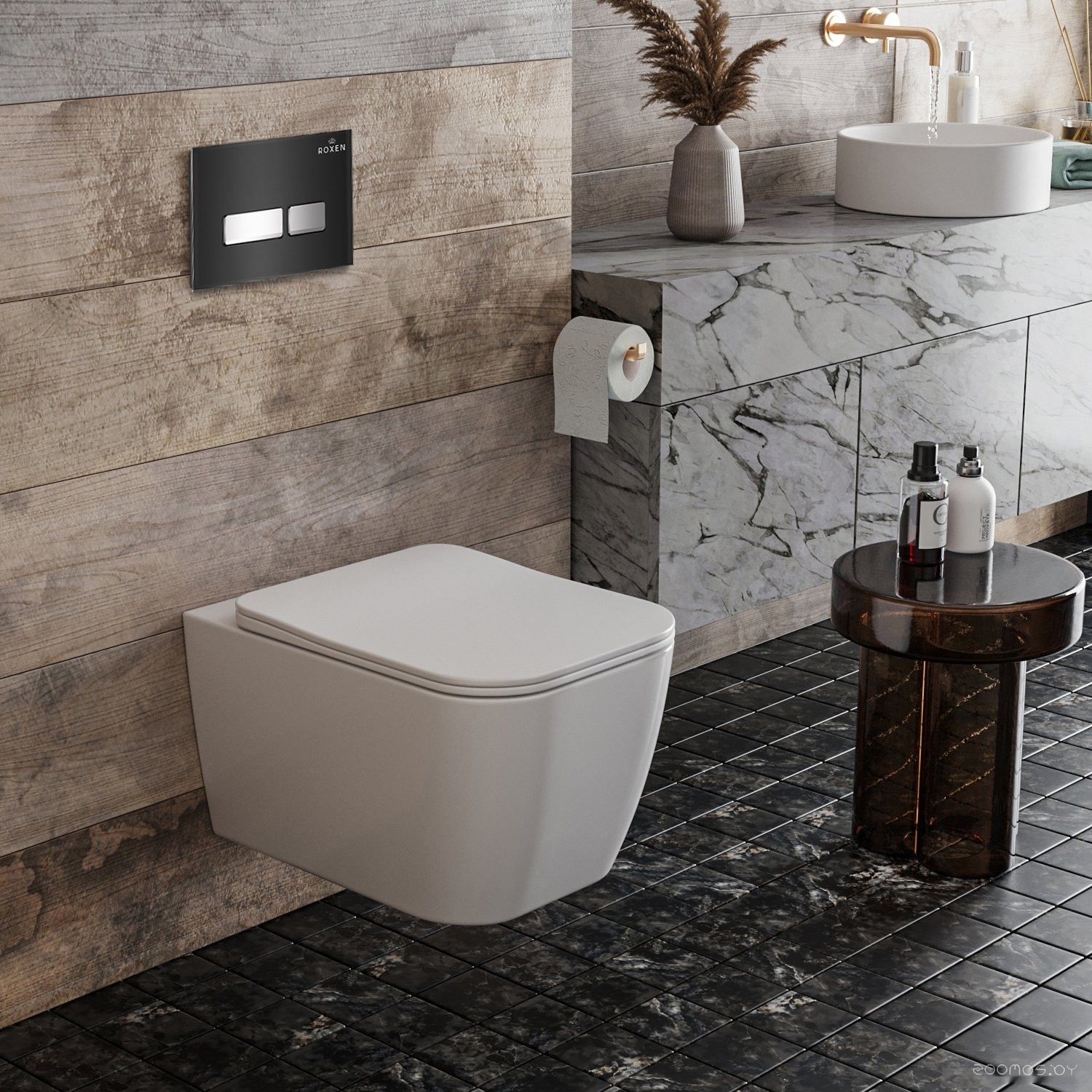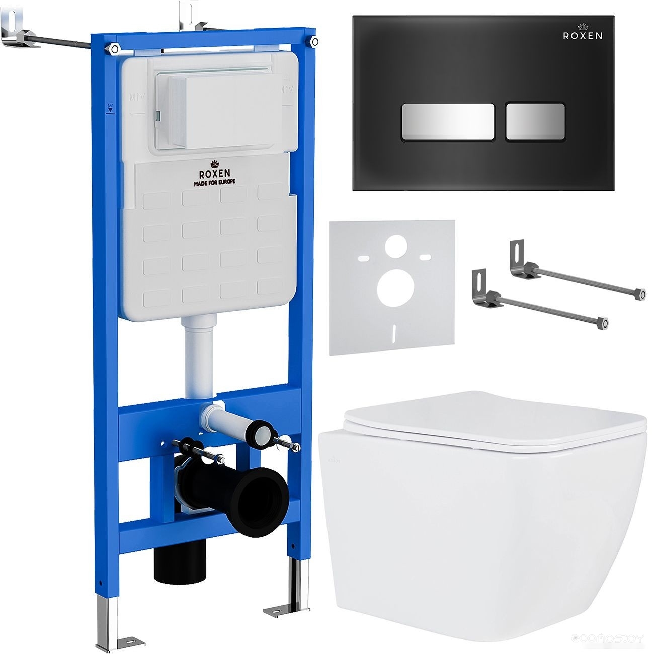 Комплект 6 в 1 унитаз Roxen Cube One Rimless с инсталляцией StounFix Slim 646038 (чёрное стекло)