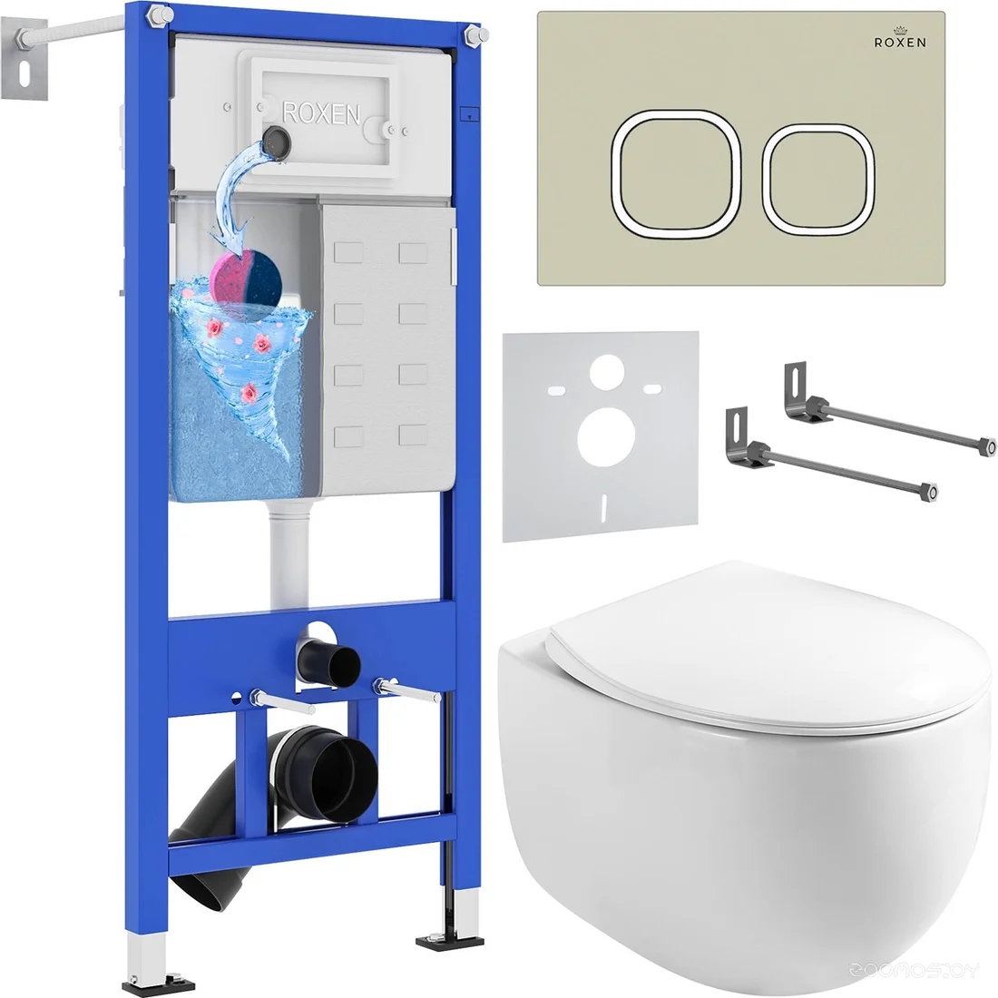 Комплект 6 в 1 унитаз Roxen Egg с инсталляцией StounFix Dual Fresh 966619 (кнопка: бежевый)