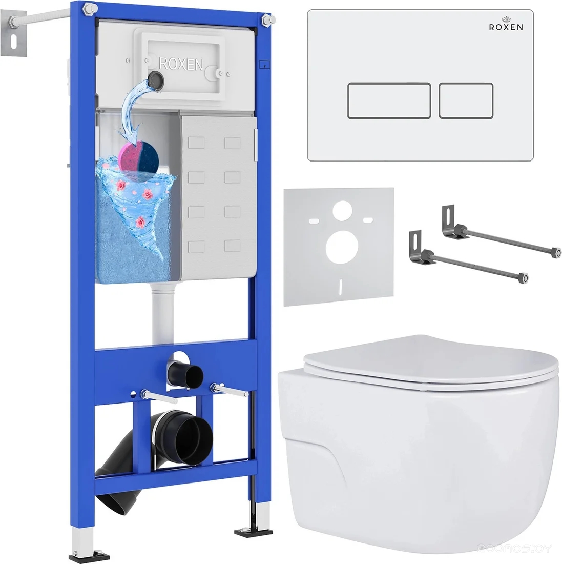 Комплект 6 в 1 унитаз Roxen Porto с инсталляцией StounFix Dual Fresh 576390 (кнопка: белый глянец)
