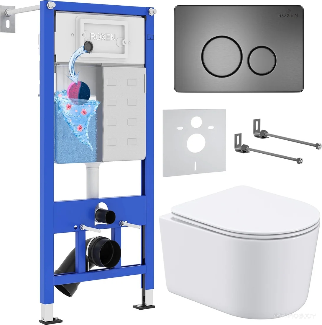 Комплект 6 в 1 унитаз Roxen Simple Compact с инсталляцией StounFix Dual Fresh 6 в 1 963592 (кнопка: оружейная сталь)