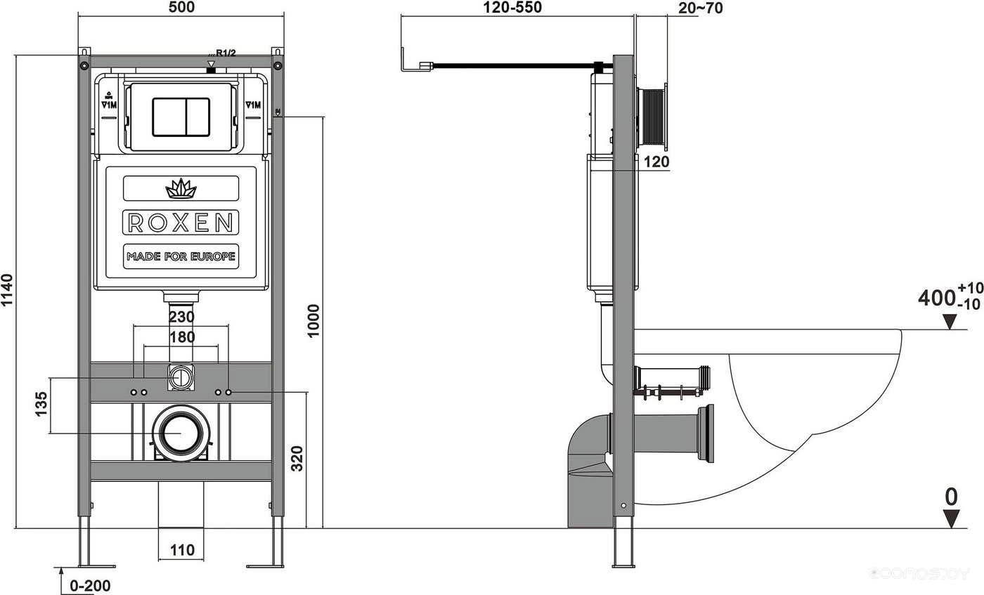 Комплект 6 в 1 унитаз Roxen с инсталляцией StounFix Dual Fresh 968249