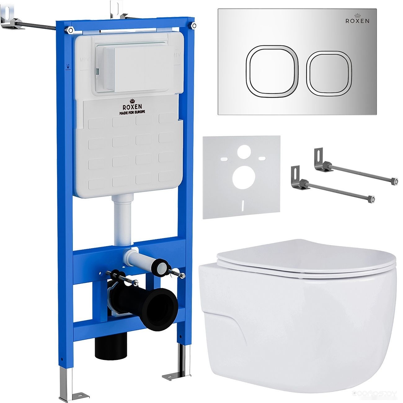 Комплект 6 в 1 унитаз Roxen с инсталляцией StounFix Slim 551921