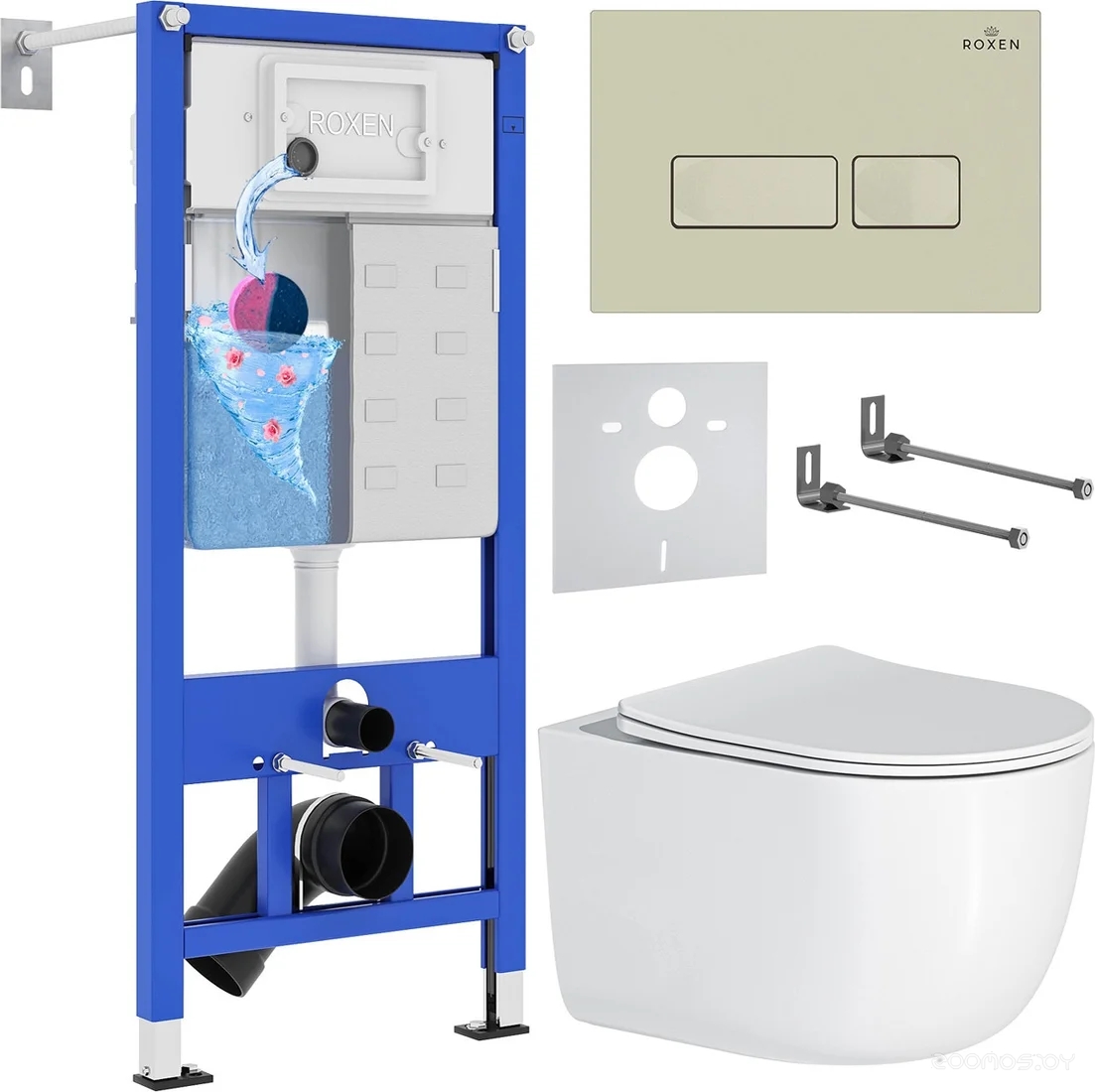 Комплект 6 в 1 унитаз Roxen Vortex Tornado с инсталляцией StounFix Dual Fresh 966745 (кнопка: бежевый)