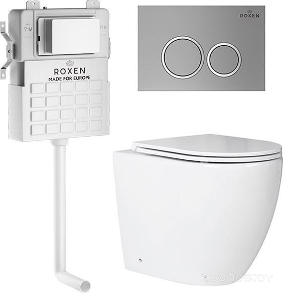 Комплект 5 в 1 унитаз Roxen Antares с инсталляцией Attach 966902 (кнопка: хром матовый)