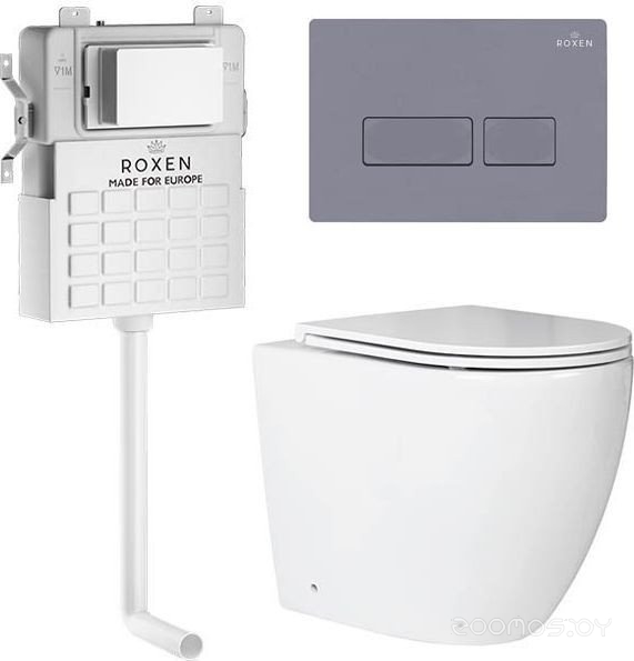Комплект 5 в 1 унитаз Roxen Antares с инсталляцией Attach 967072 (кнопка: серый бетон)