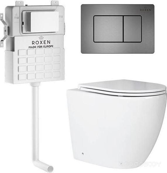 Комплект 5 в 1 унитаз Roxen Antares с инсталляцией Attach 967089 (кнопка: оружейная сталь)