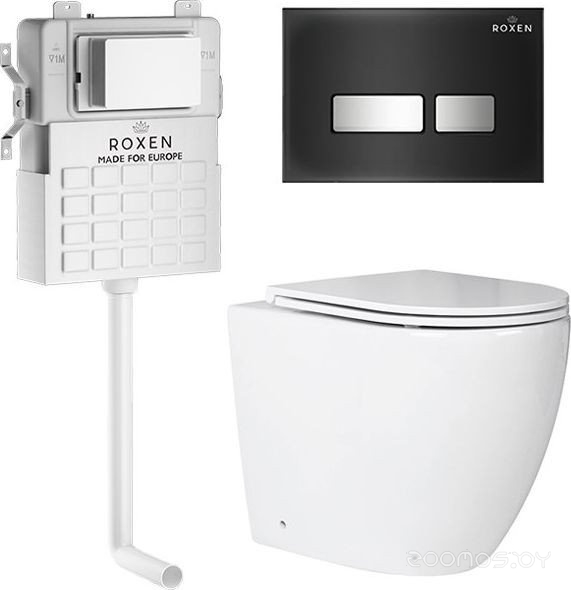 Комплект 5 в 1 унитаз Roxen Antares с инсталляцией Attach 967099 (кнопка: черный)