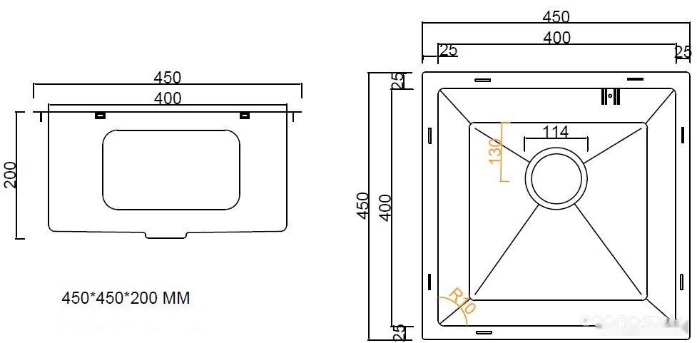 Ширина мойки: 45 см