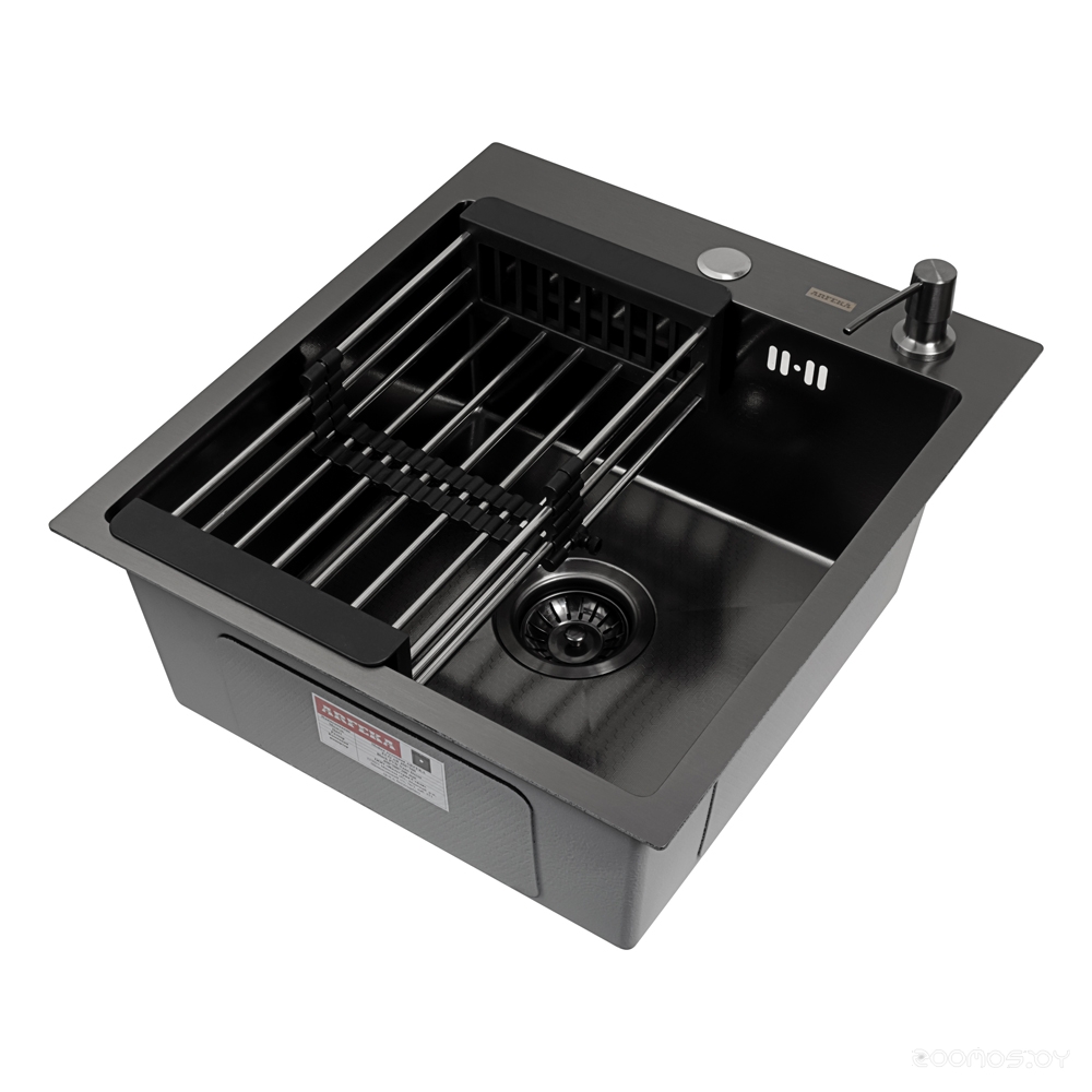 Кухонная мойка ARFEKA ECO AR 450*500, коландер, дозатор BLACK DECOR +CL AR+DS AR