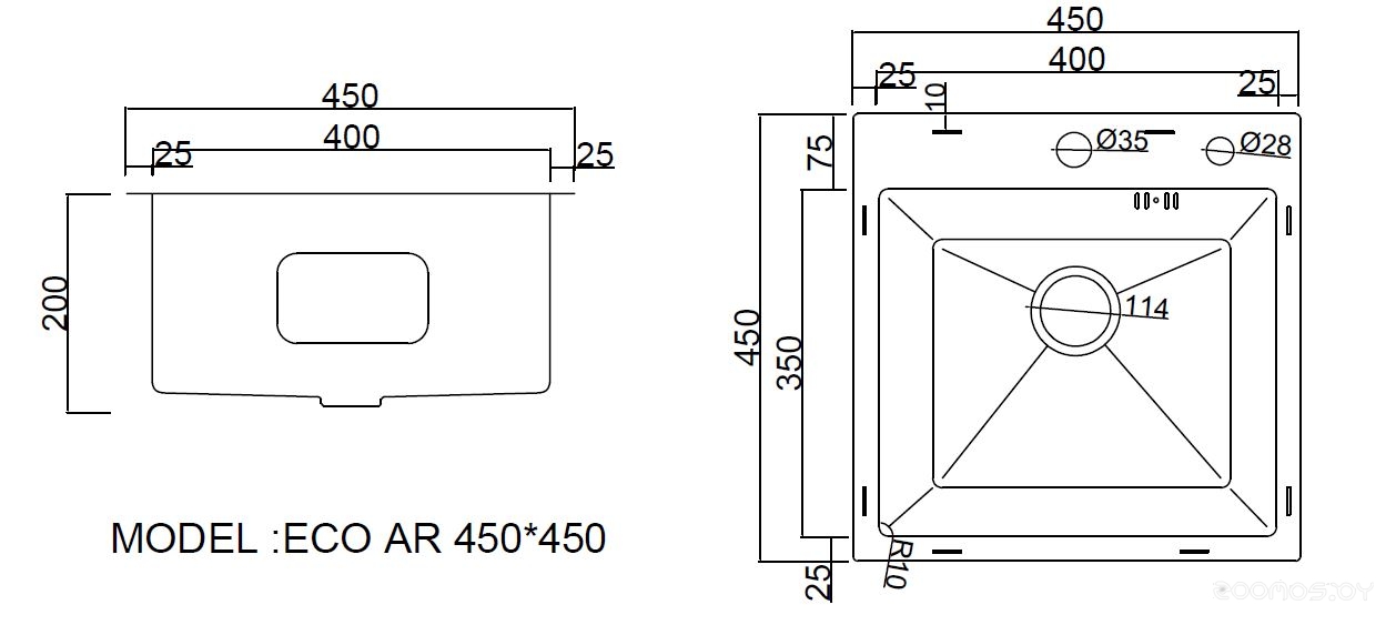 Кухонная мойка ARFEKA ECO AR 45х45 N+CL AR+DS AR (Satin Decor Millet Grains)