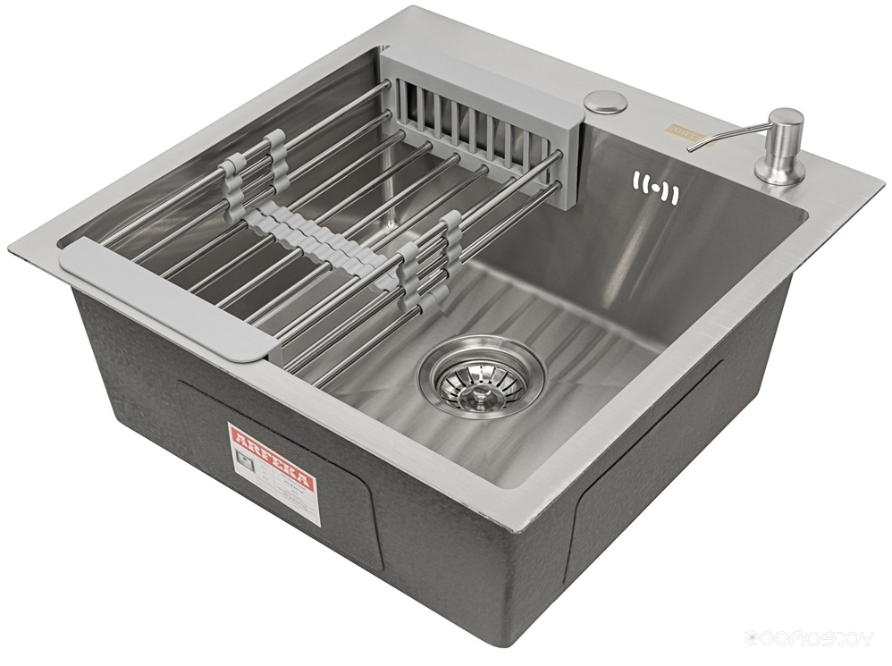 Кухонная мойка, телескопический коландер, дозатор для жидкого мыла, сливная арматура