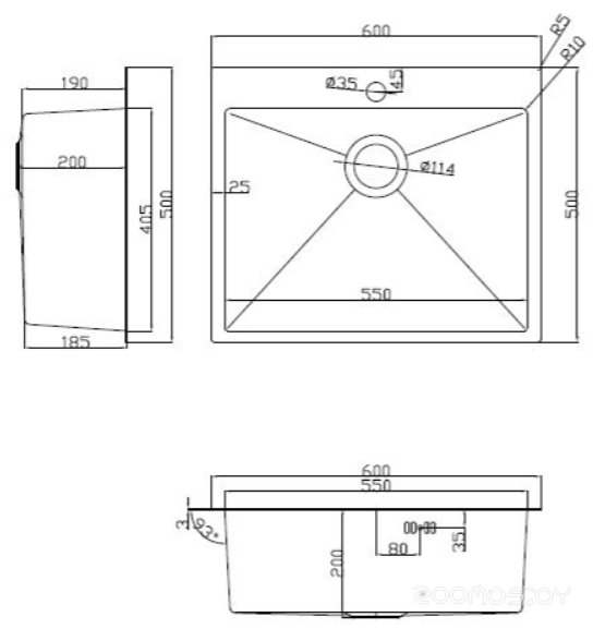 Диаметр сливного отверстия: 3.5 "