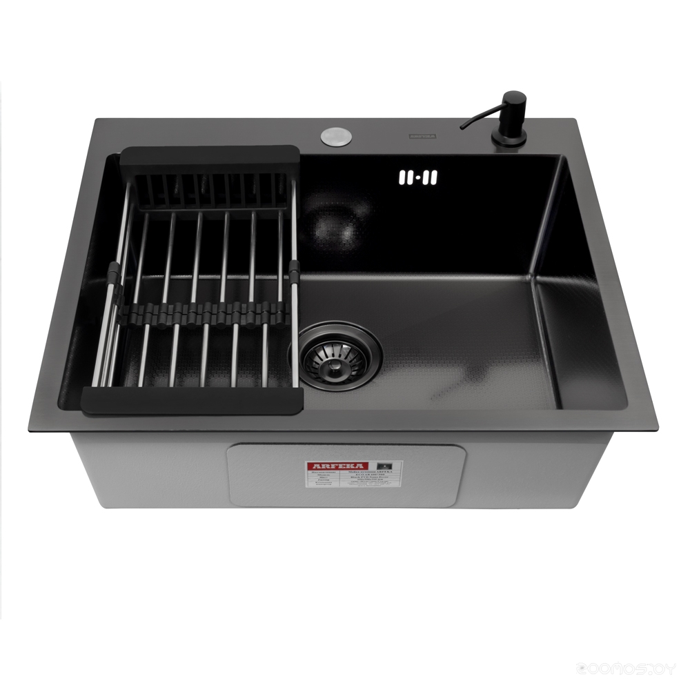 Кухонная мойка ARFEKA ECO AR 600*500, коландер, дозатор BLACK DECOR +CL AR+DS AR