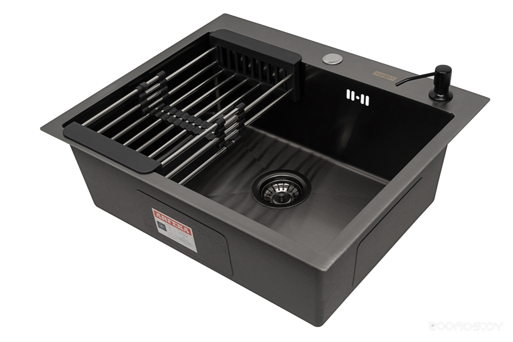 Кухонная мойка, телескопический коландер, дозатор для жидкого мыла, сливная арматура
