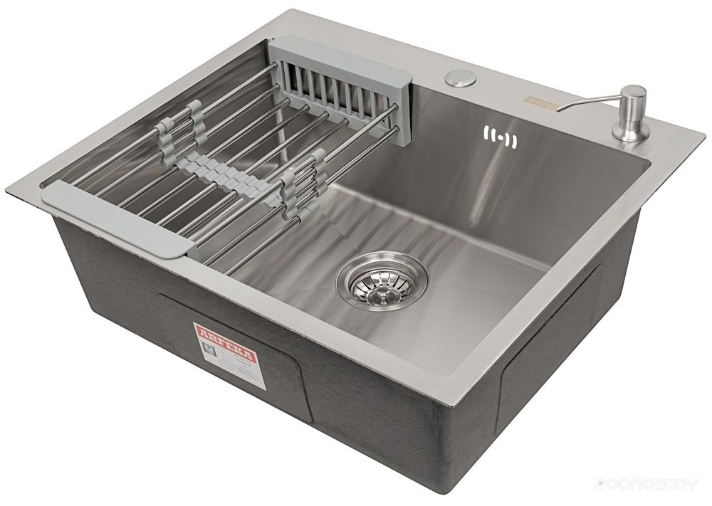 Кухонная мойка, телескопический коландер, дозатор для жидкого мыла, сливная арматура