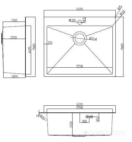 Описание набора: Кухонная мойка, телескопический коландер, дозатор для жидкого мыла, сливная арматура