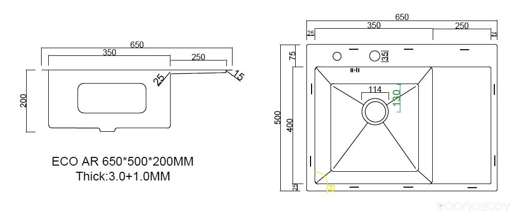 Кухонная мойка ARFEKA ECO AR 650*500 L SATIN