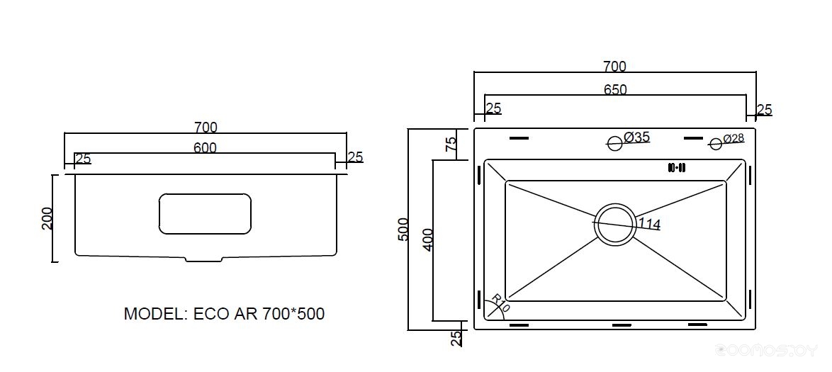 Количество отверстий под смеситель: 2