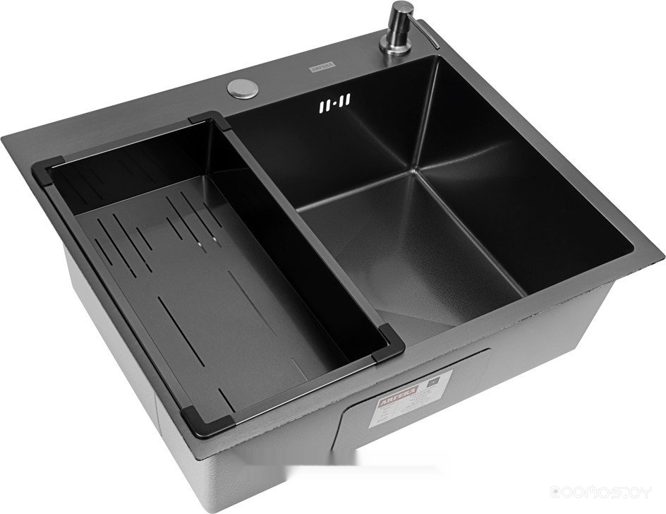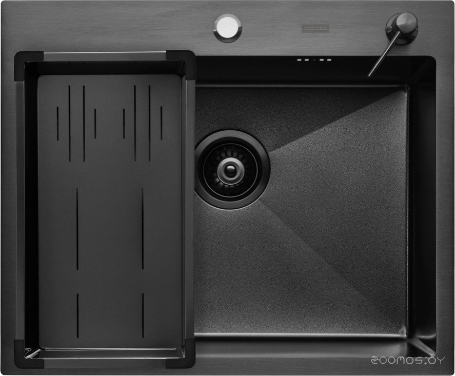 Кухонная мойка ARFEKA Eco AR мойка 600*500, коландер G, дозатор Black Decor Volcanic +CL AR G+DS AR