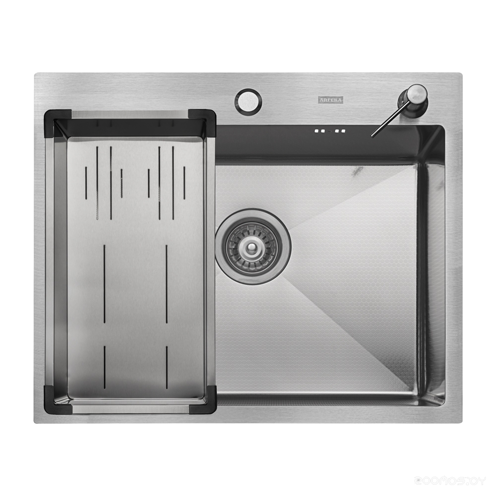 Кухонная мойка ARFEKA Eco AR мойка 600*500, коландер G, дозатор Satin Decor +CL AR G+DS AR