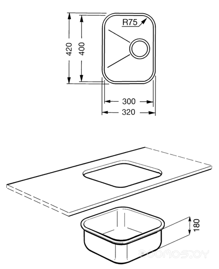 Глубина монтажного отверстия под мойку: 40 см
