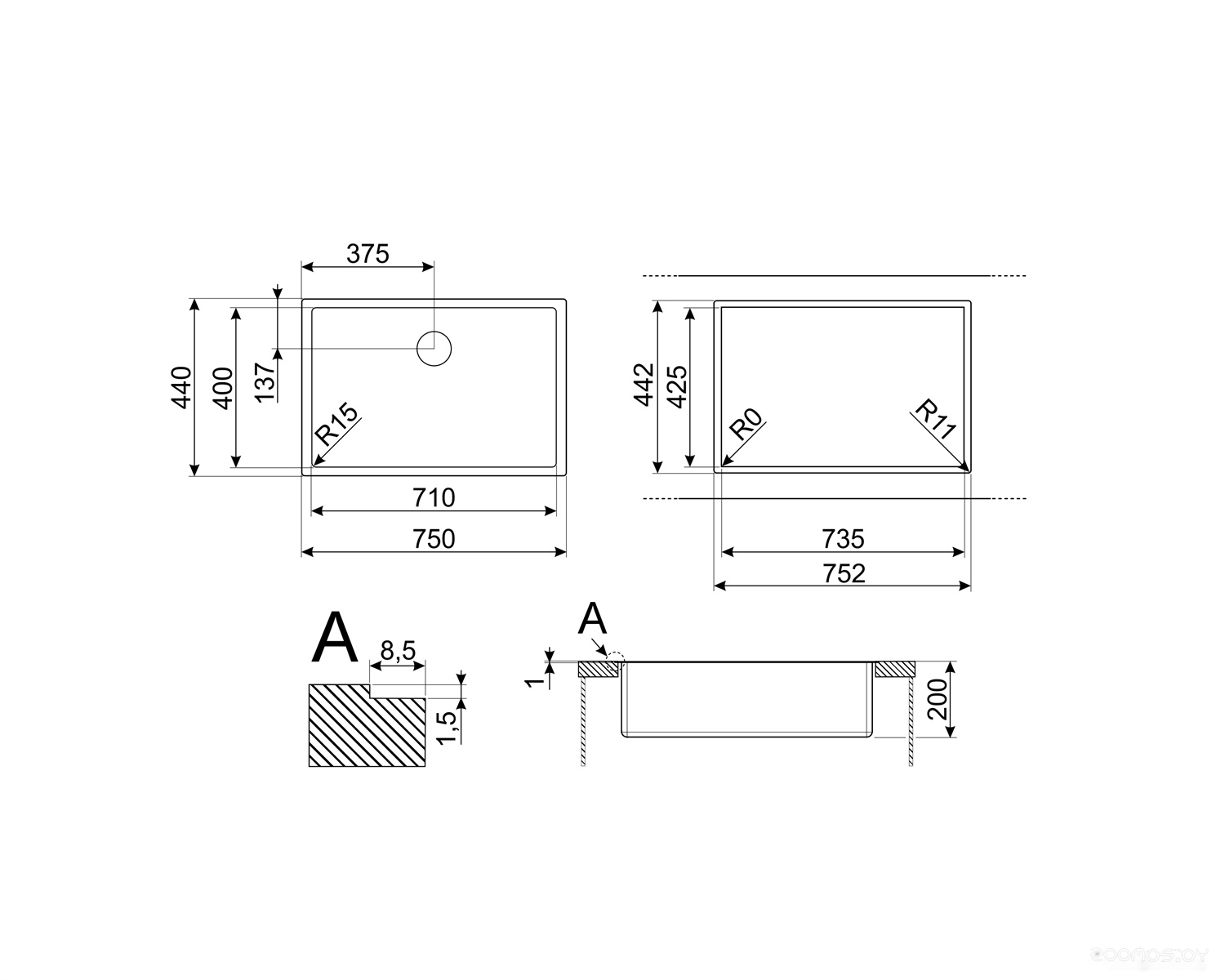 Установка: над столешницей, вровень со столешницей, под столешницу