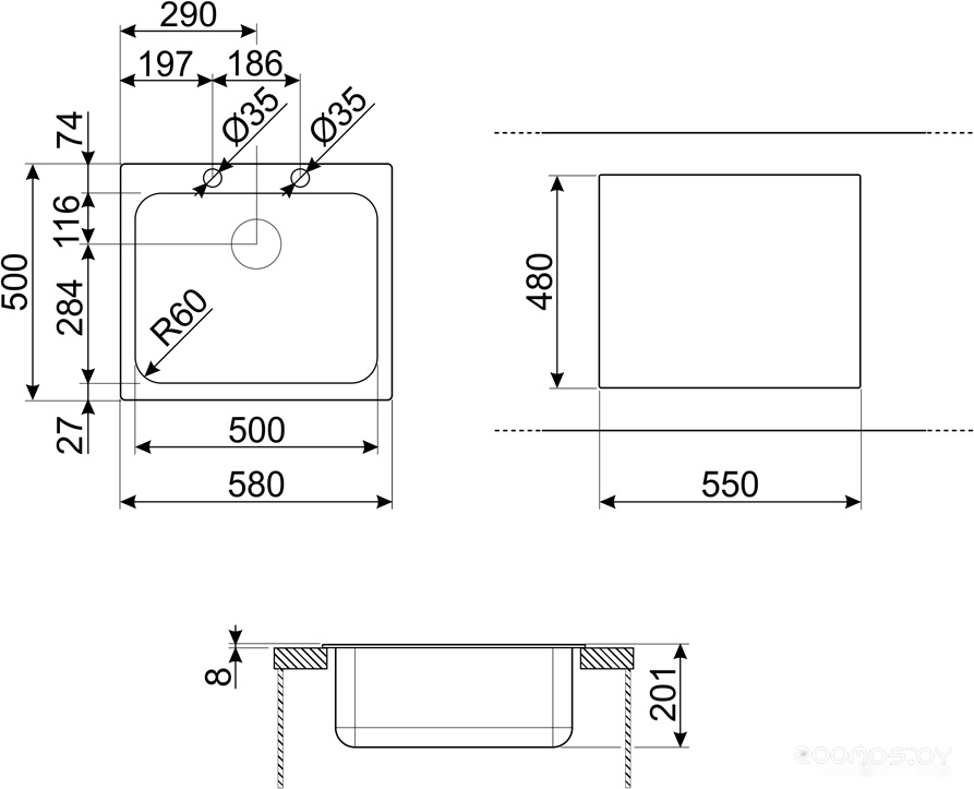 Ширина мойки: 58 см