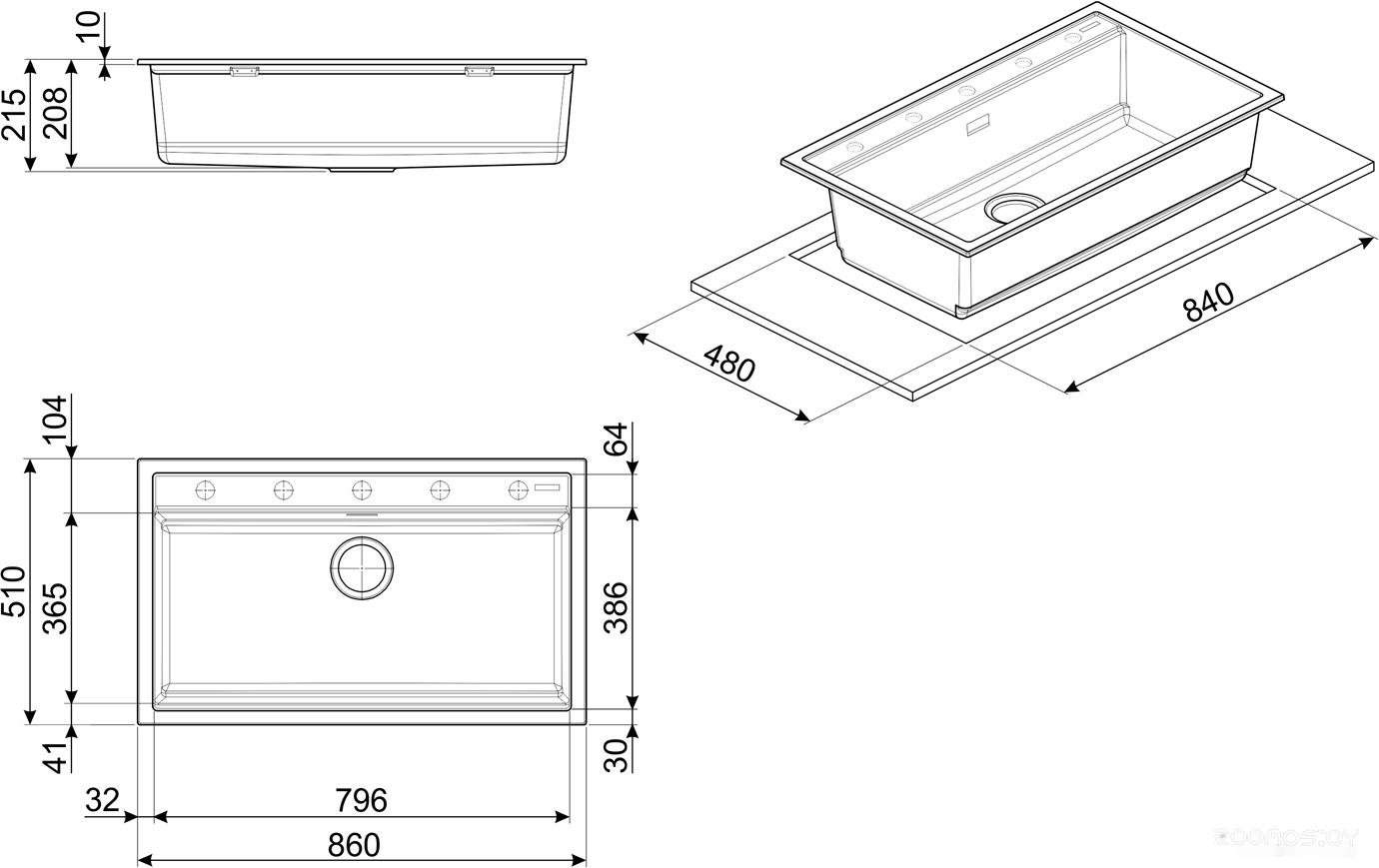 Ширина мойки: 86 см