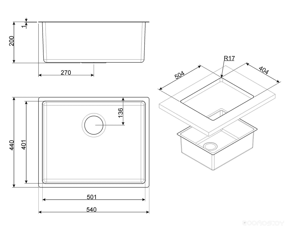Глубина мойки: 54 см