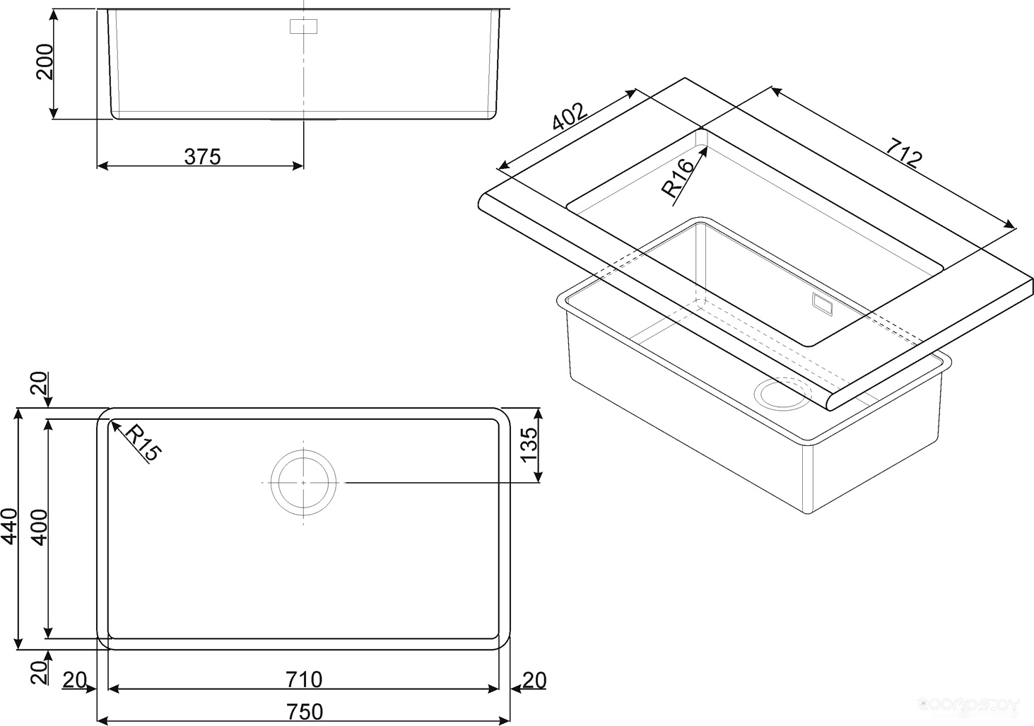 Описание набора: Уплотнительная лента, фиксирующие зажимыСифон с возможностью подключения посудомоечной или стиральной машины