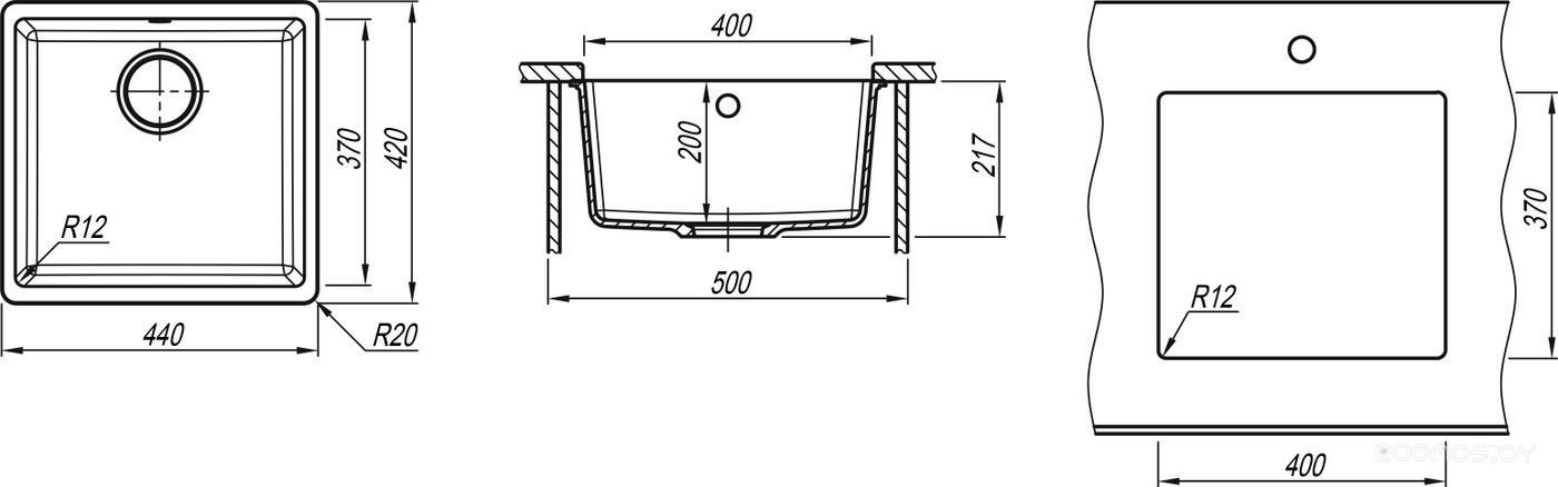 Ширина мойки: 44 см